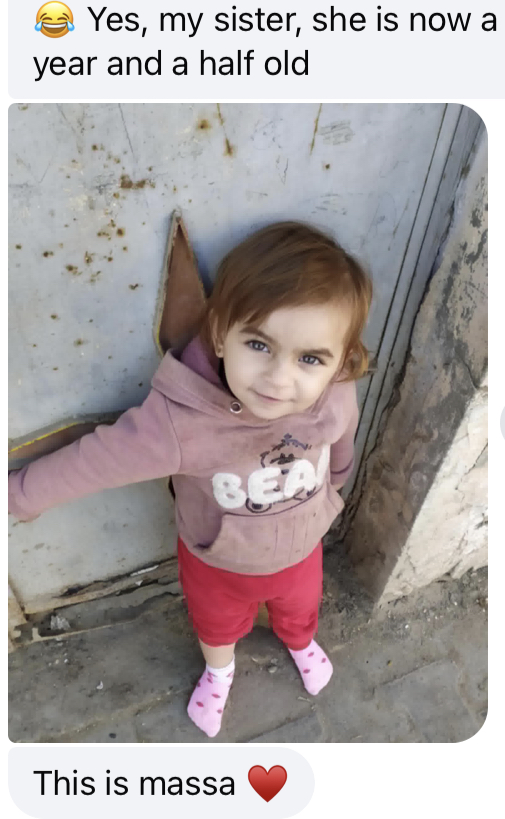 Below: Mohammed and his sister Mona on the left. Mohammed’s sister Massa on the right.